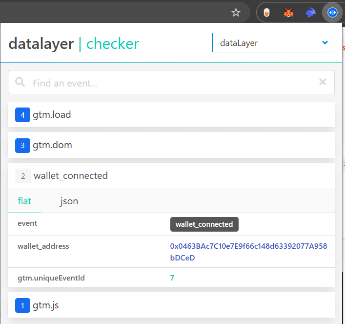 The pre-requisite for user tracking is to at least have a DataLayer event with a “wallet_connect” event that becomes the trigger. Example: On this test website https://scalo-testing.vercel.app/