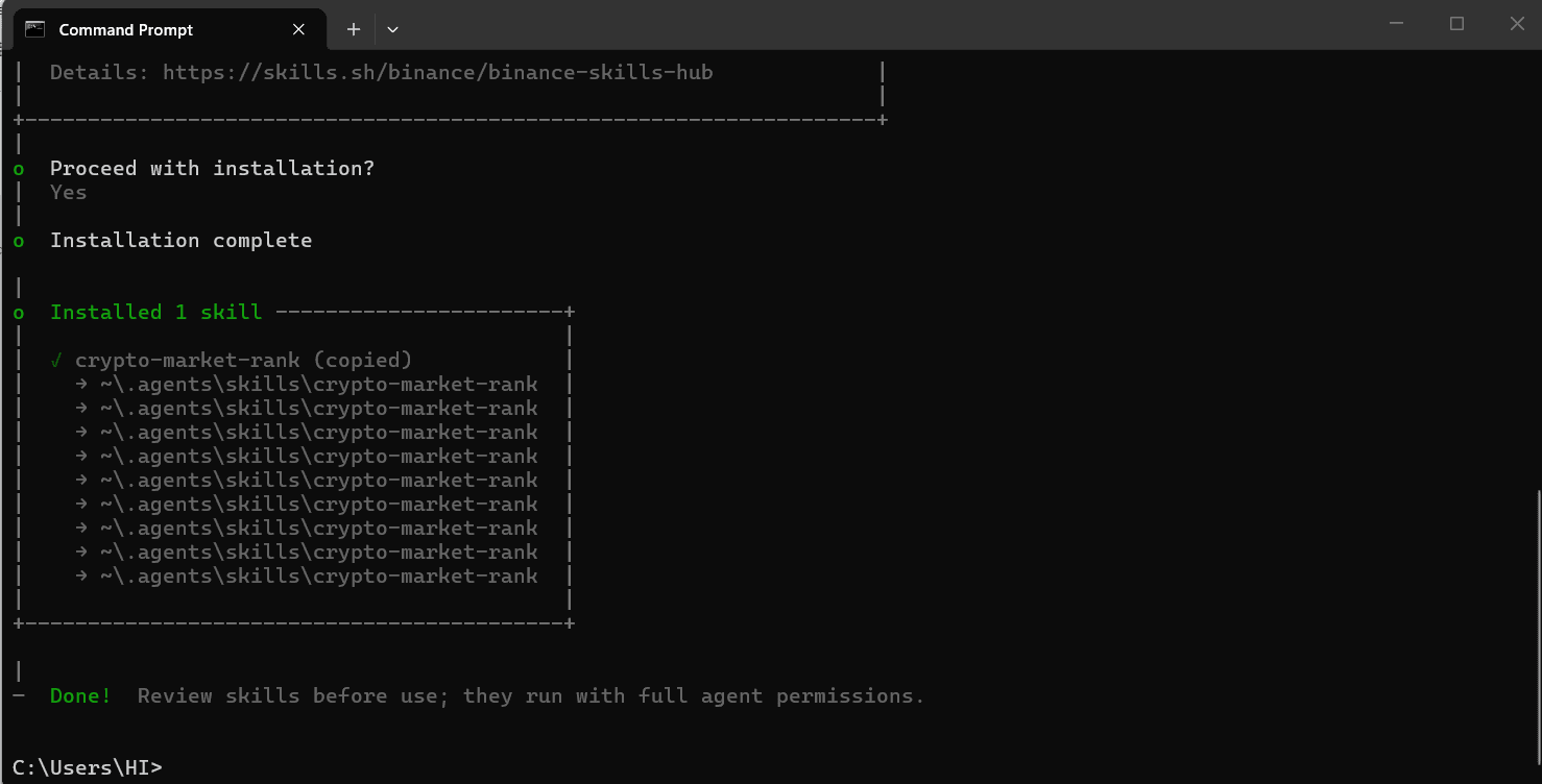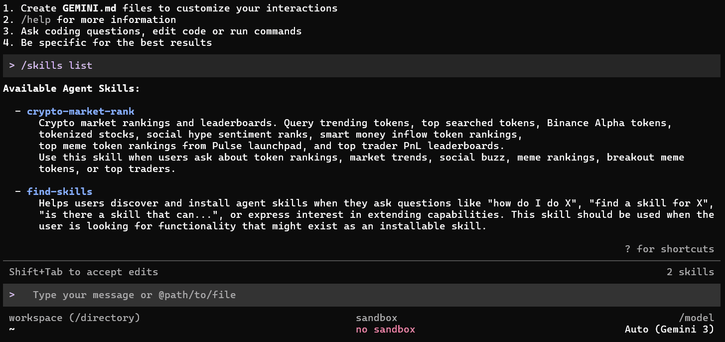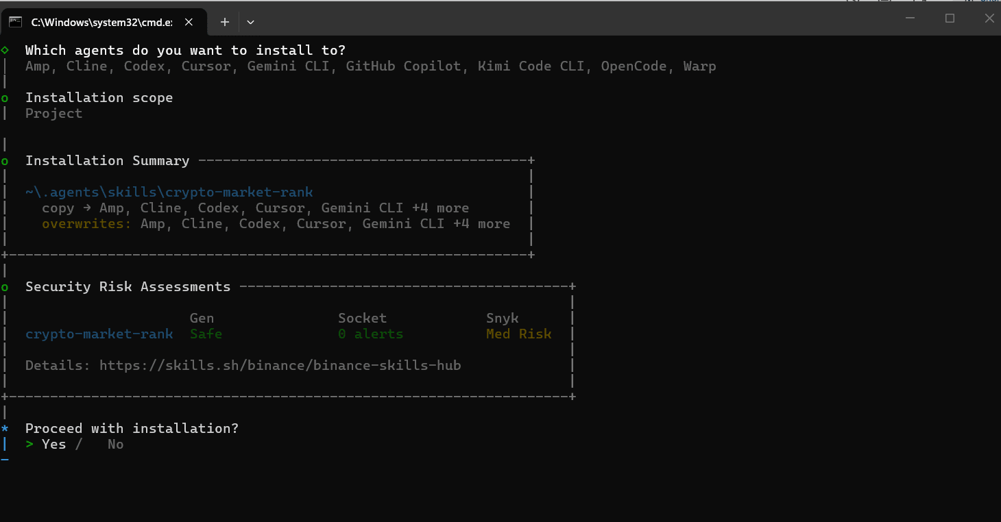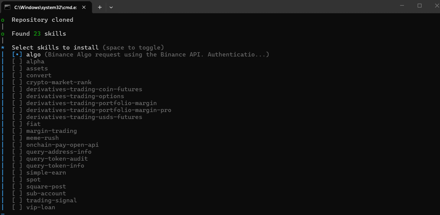 3. Add the Binance Web3 Capabilities Add the official skills from Binance