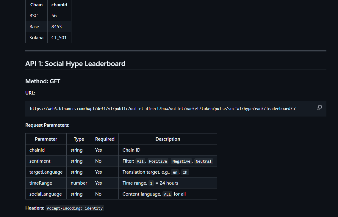 If you review the first API link for Social Hype Leaderboard, you can see the mandatory and optional parameters.